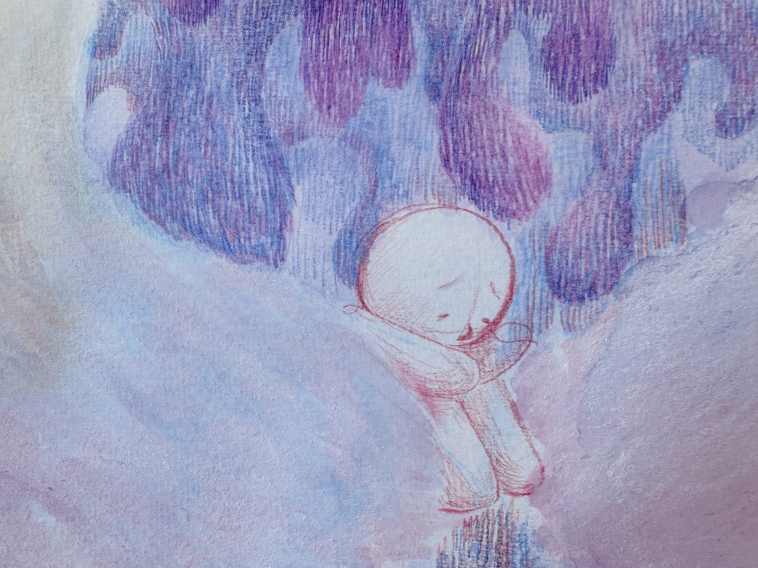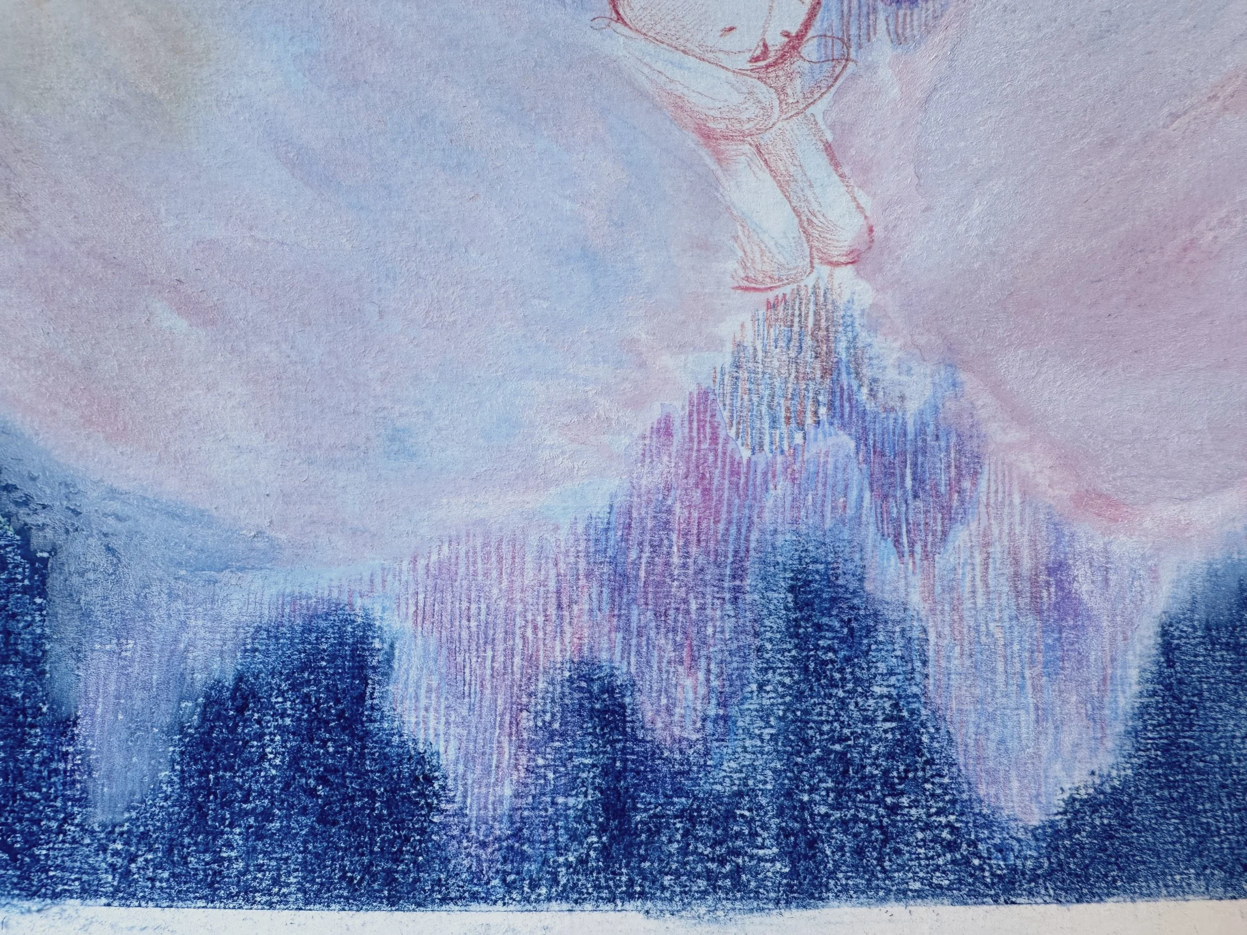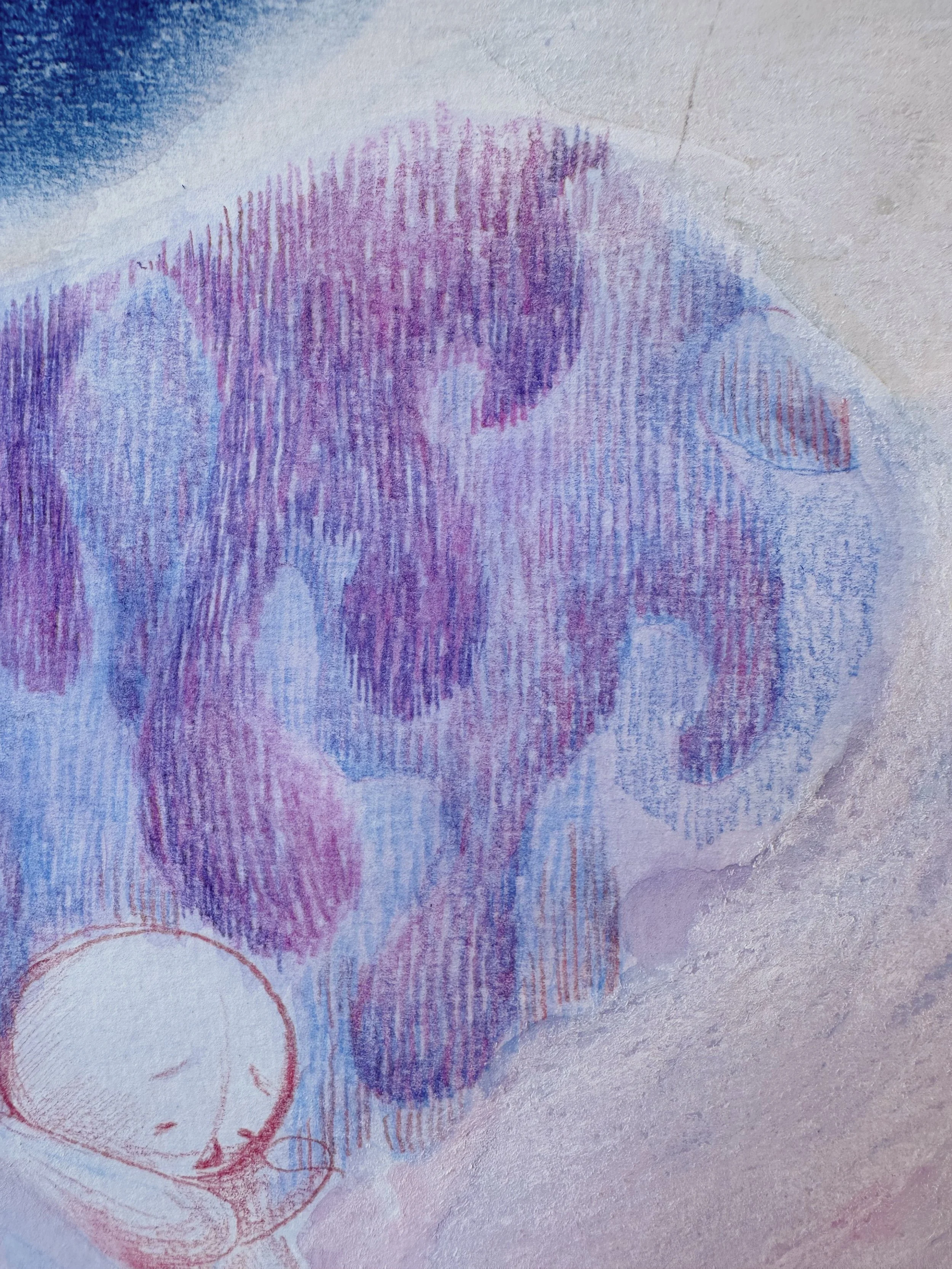 Give Me a Hug, 2024, 32 × 32 cm, pastel, oil pastel, coloured pencil, and watercolour on watercolour paper