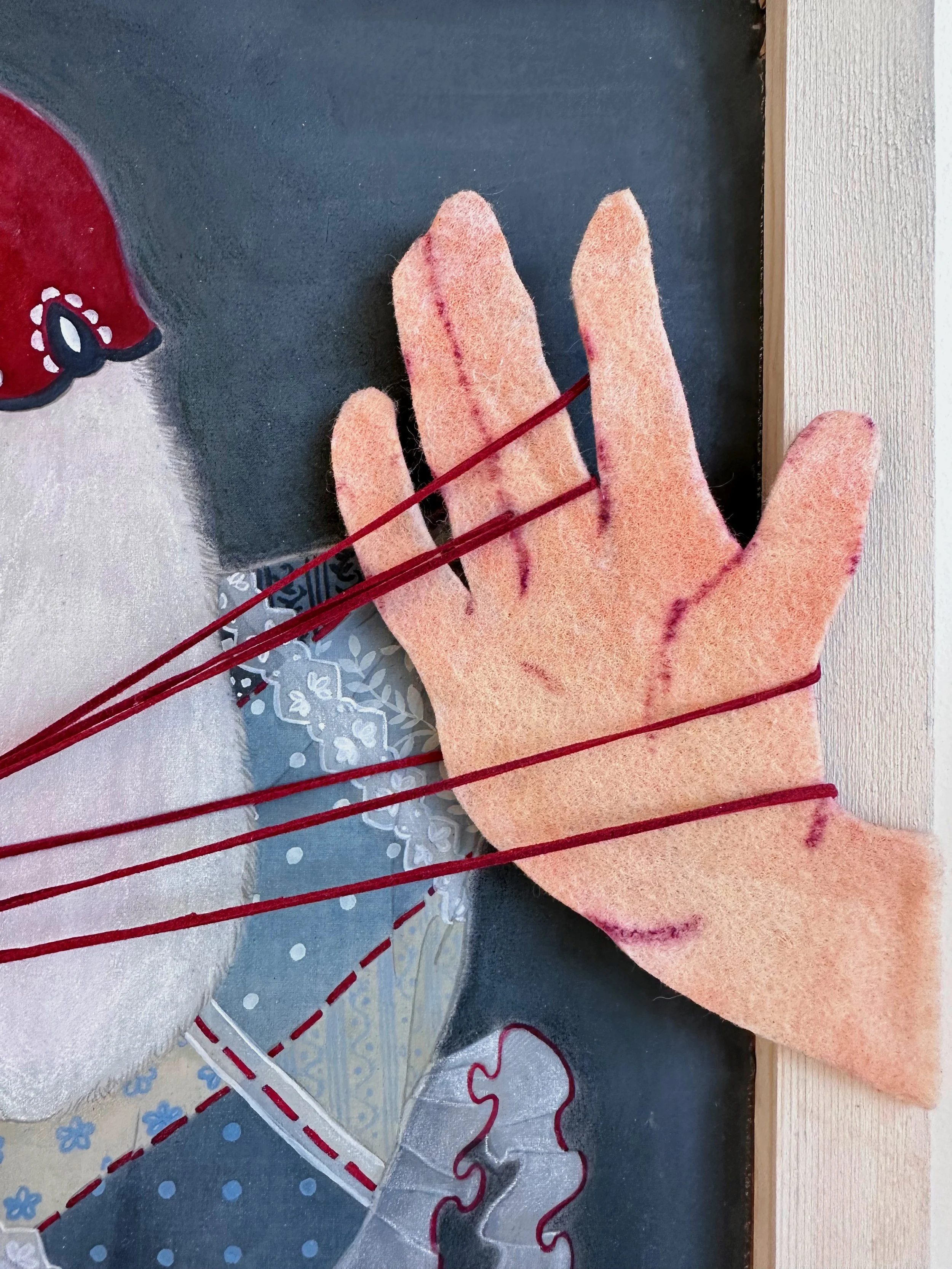 Cradle - Sing Me a Lullaby, 2024, 40 x 40 cm, Chinese painting pigments, watercolour and suede cord on silk